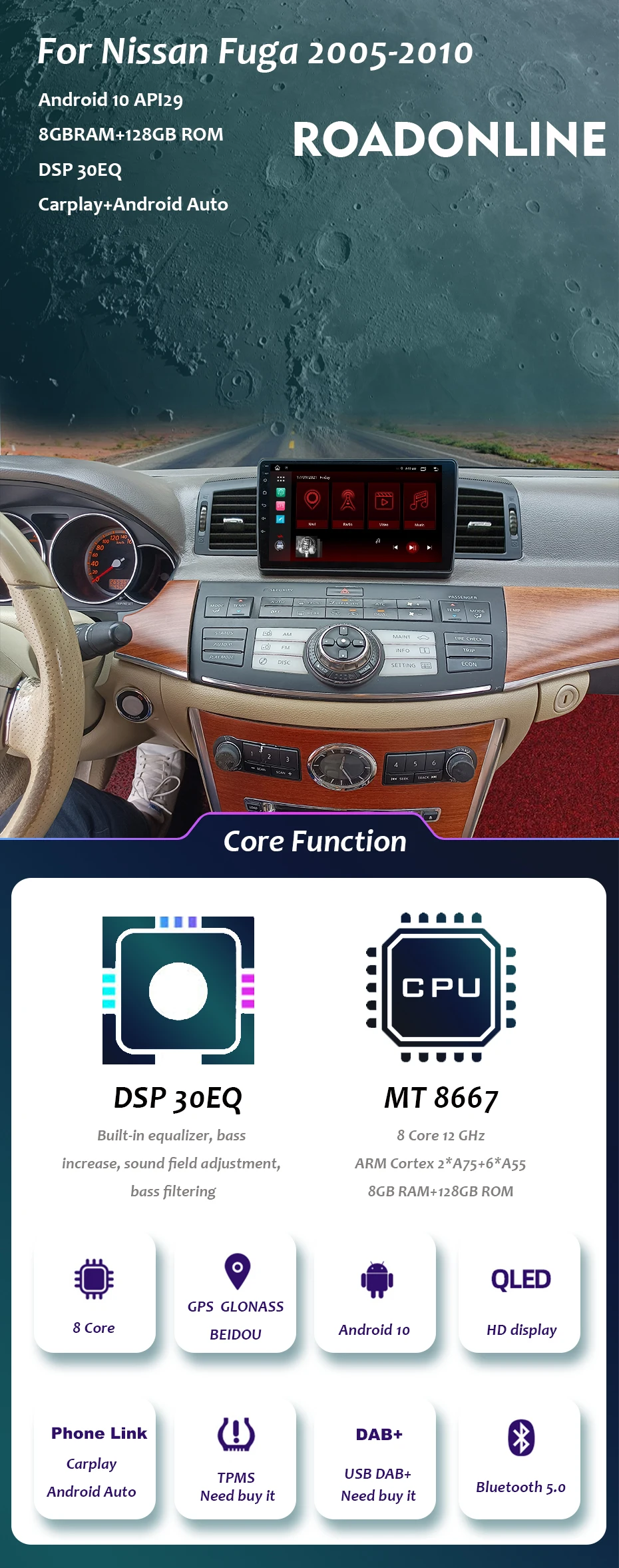 Автомобильные стереосистемы 8 + 256 ГБ для NISSAN FUGA 2005-2010 Android 10 AI Voice 8 Core Gps WiFi 4G радио Автомобильный мультимедийный плеер