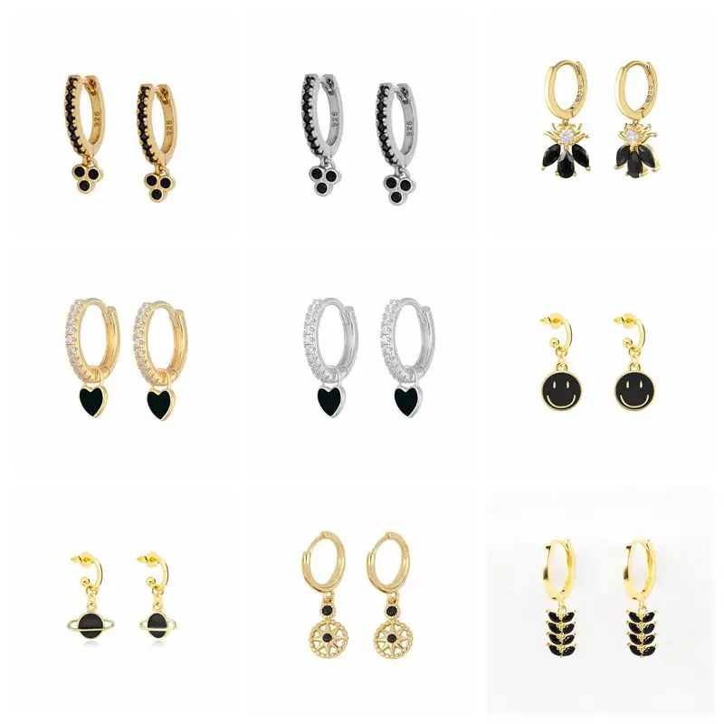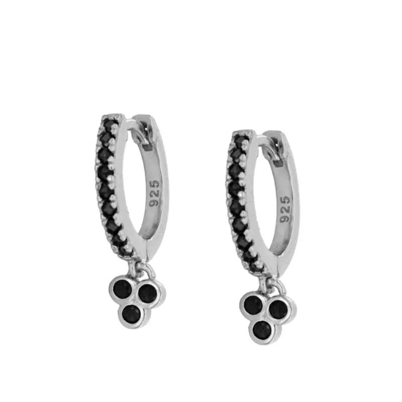 Женские серьги из серебра 925 пробы с черными бриллиантами