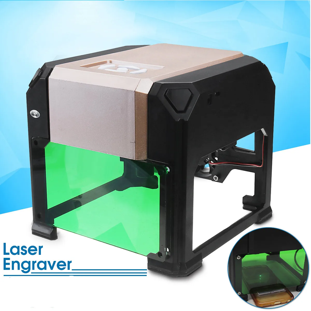 Лазерный гравер с ЧПУ, гравировальный станок 3000 МВт для деревообработки с диапазоном 80x80 мм и мини-лазером 3 Вт