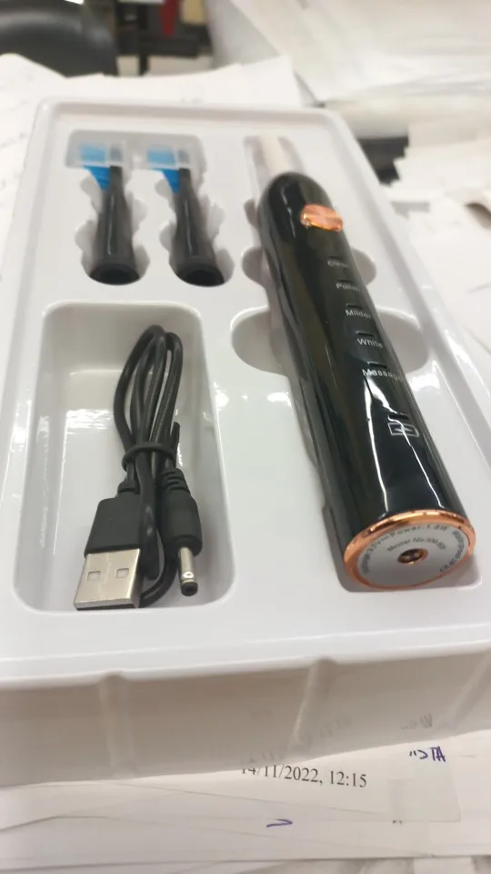 Особенности:1. Мягкая щетина эффективно доходит до каждого угла и достигает отличных результатов очистки без мертвого угла. Зубная щетка может поддерживать 180 дней использования после полной зарядки за 24 часа.2. Электрическая зубная щетка имеет степень водонепроницаемости IPX7, она функциональна для удаления грязи и остатков, которые могут вызвать серьезные проблемы с полостью рта и защитить вас от неприятного изо рта.3. Оснащен 6 щетками, частота вибрации достигает 18000 раз в минуту. Щетинки в меру мягкие и плотные, простые и гибкие в использовании, не повреждают зубы и десны, подходят для чувствительной толпы.4. Есть шесть интеллектуальных режимов и 4 скорости для удовлетворения ваших различных потребностей: чистый режим для максимального эффекта очистки, режим полировки поверхности зубов и делает зубы яркими и чистыми, чувствительный режим для людей с чувствительными зубами или деснами, белый режим для людей, желающих отбелить зубы, режим ухода за деснами для массажа десен.Характеристики:Цвет: белыйМатериал: АБСРазмер: 21*2 смВес: 110 гАккумулятор: 300 мАчЧастота вибрации: 18000 раз в минутуИсточник питания: зарядка через USBВодонепроницаемость: IPX7Упаковочный лист:1 * хост6 насадок для зубной щетки1 * USB-шнур для зарядки
