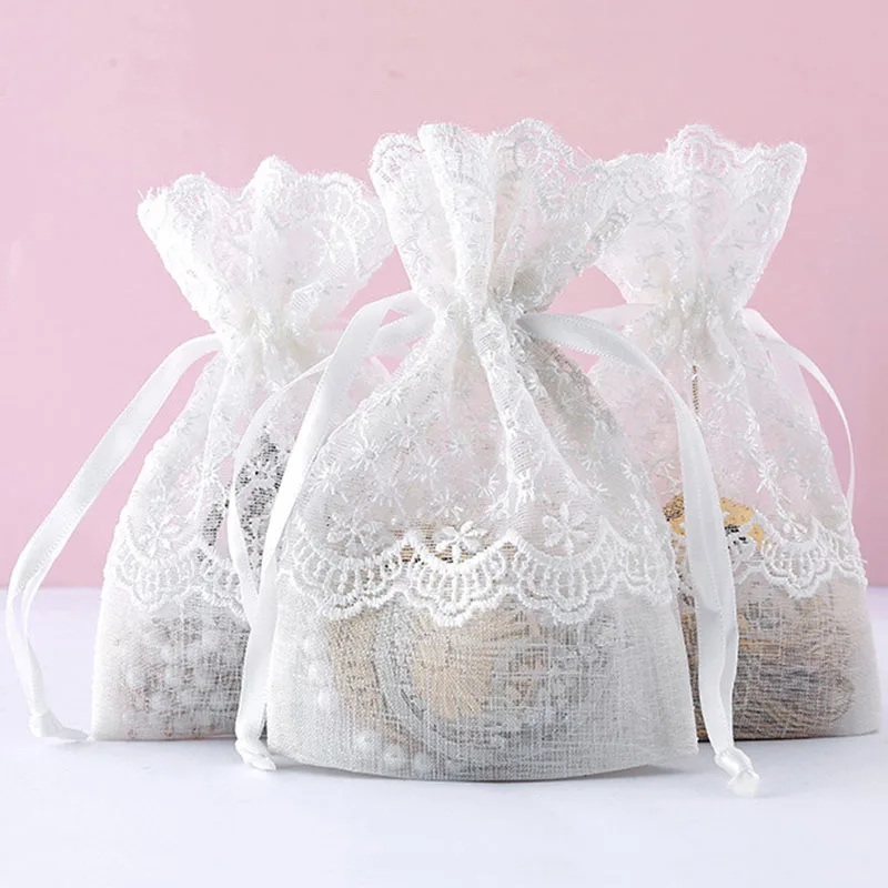 Милые кружевные белые Подарочные Упаковочные пакеты с цветами, шоколадные конфеты, ювелирные изделия, органайзер для свадебной вечеринки, дня рождения, Пасхи, Рождества