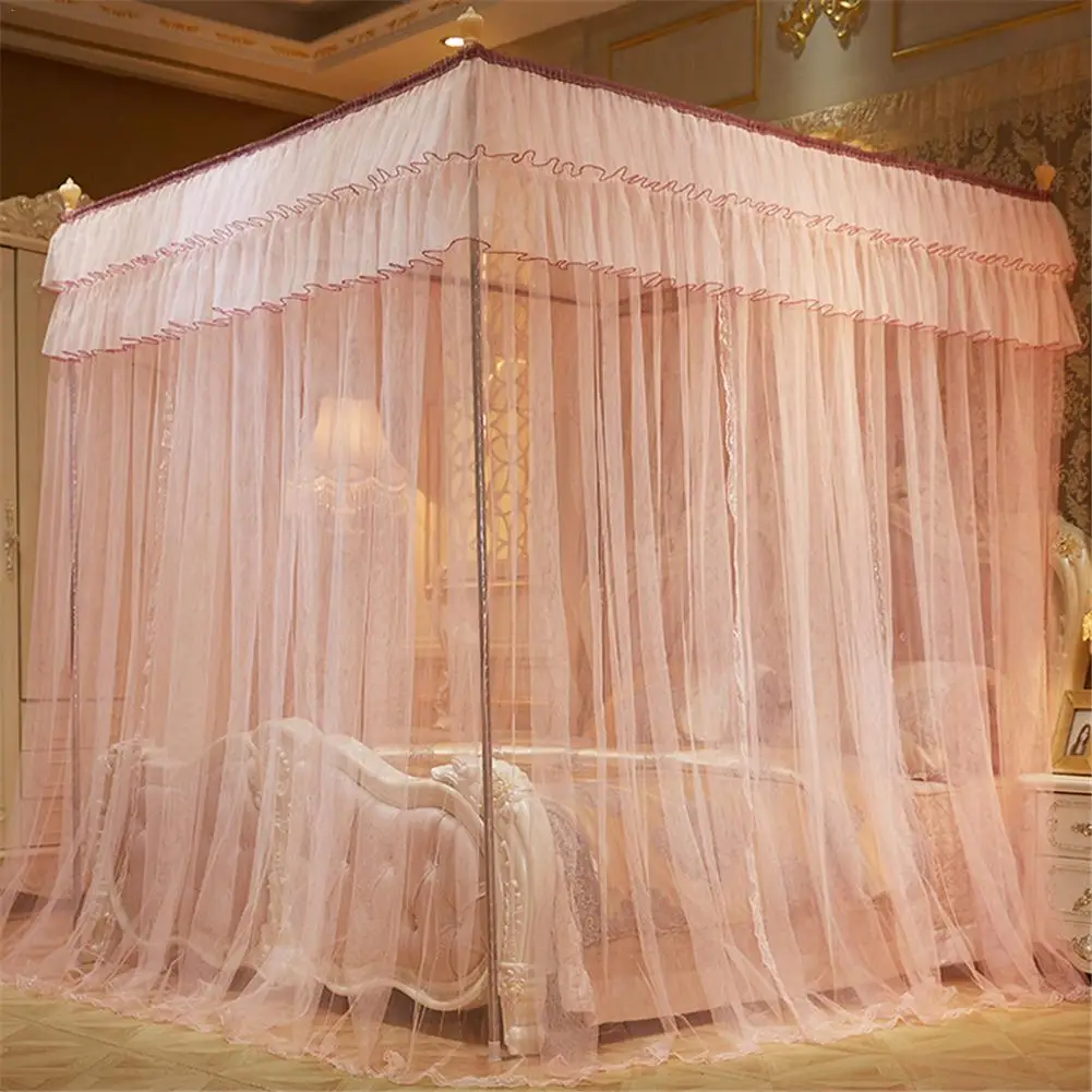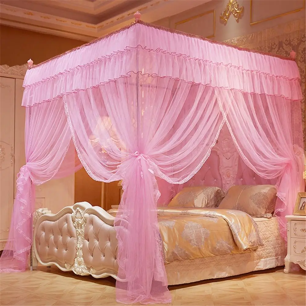 Розовая навес для кровати 1,5*2 м, Королевский навес принцессы, Королевский навес с москитной сеткой, навес для кровати с 4 углами, занавеска в пол, напольная москитная сетка