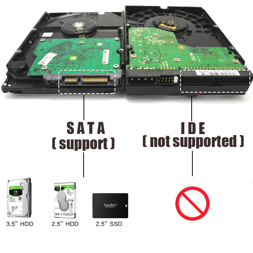 SATA interface Support model22.5 inch HDD/SSD, no adapter required