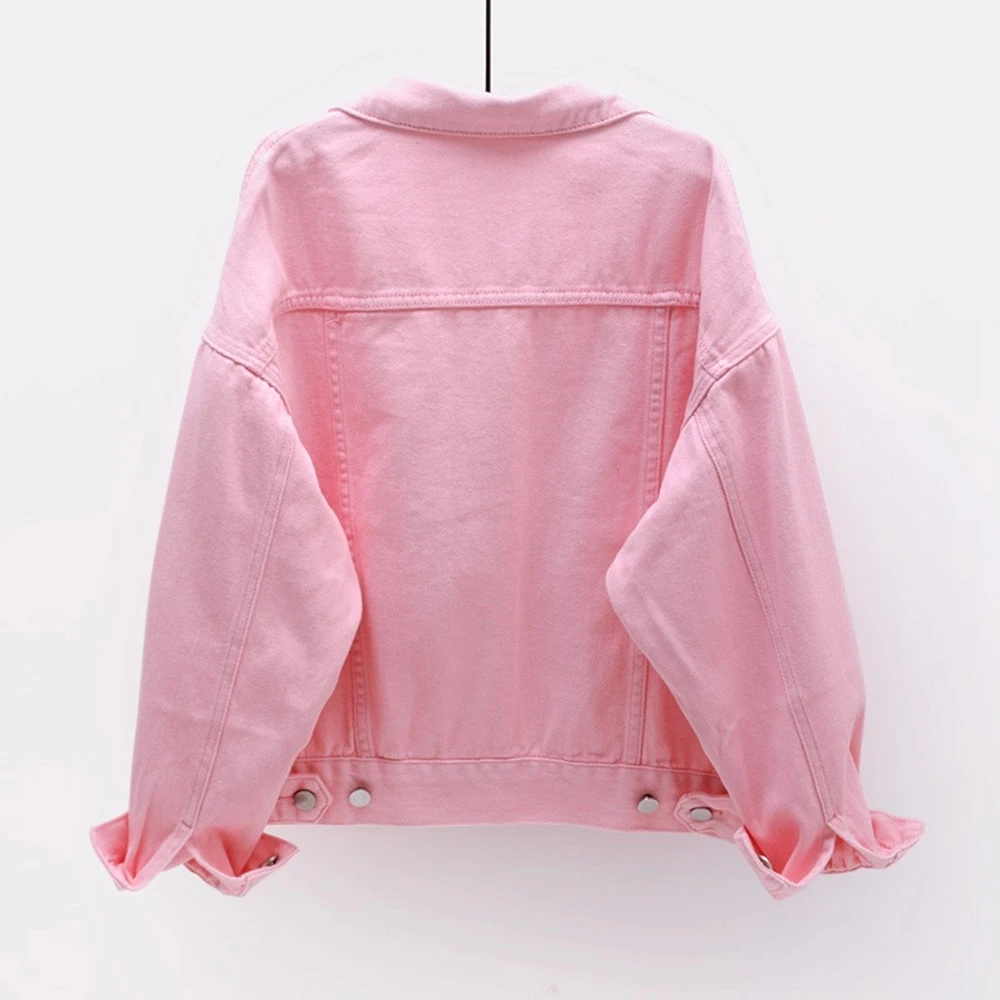 Женская джинсовая куртка, короткая весенне-осенняя куртка, розовые ...