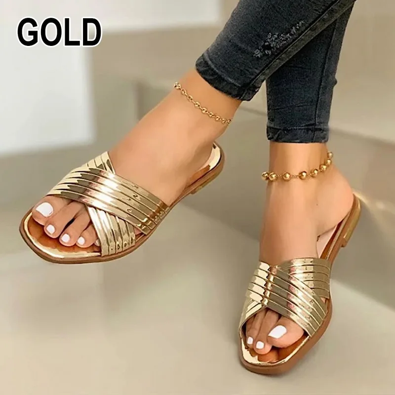 Женские сандалии на плоской подошве, повседневные шлепанцы, 2022