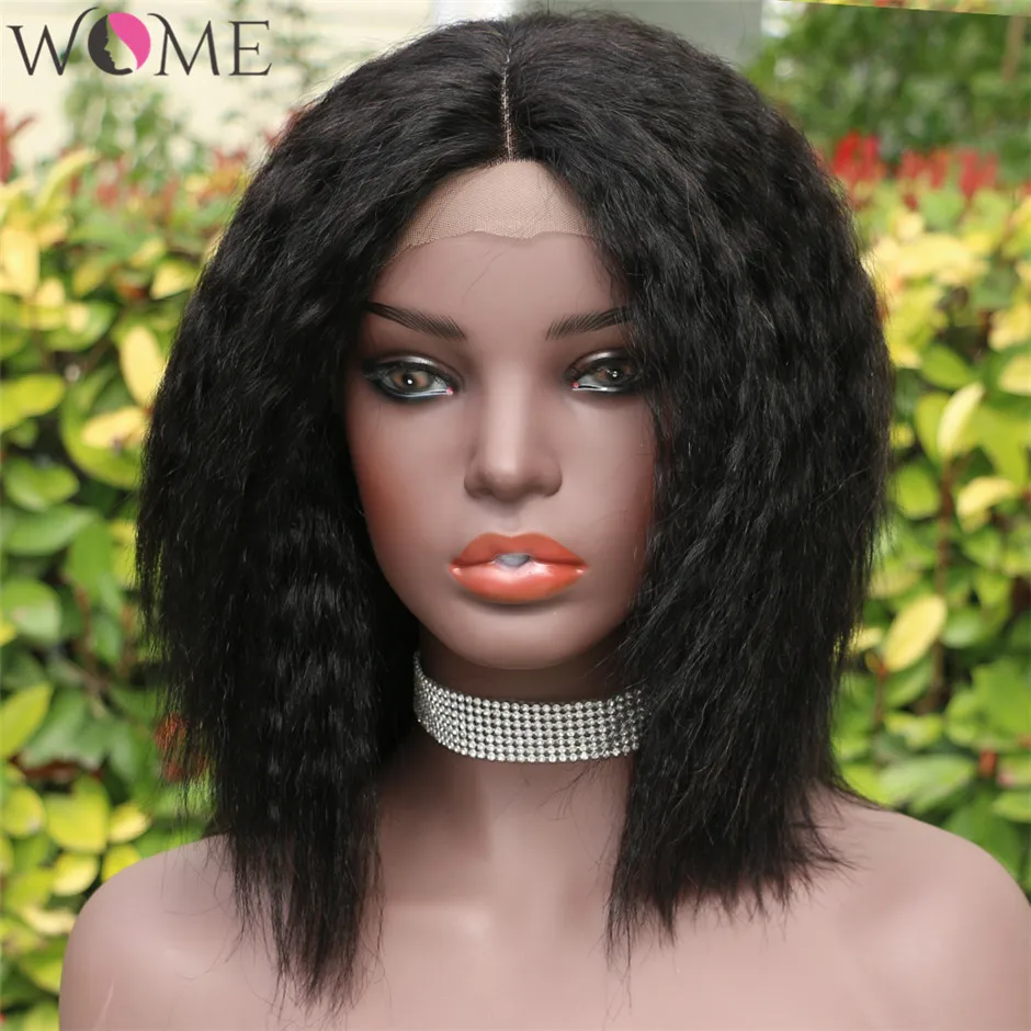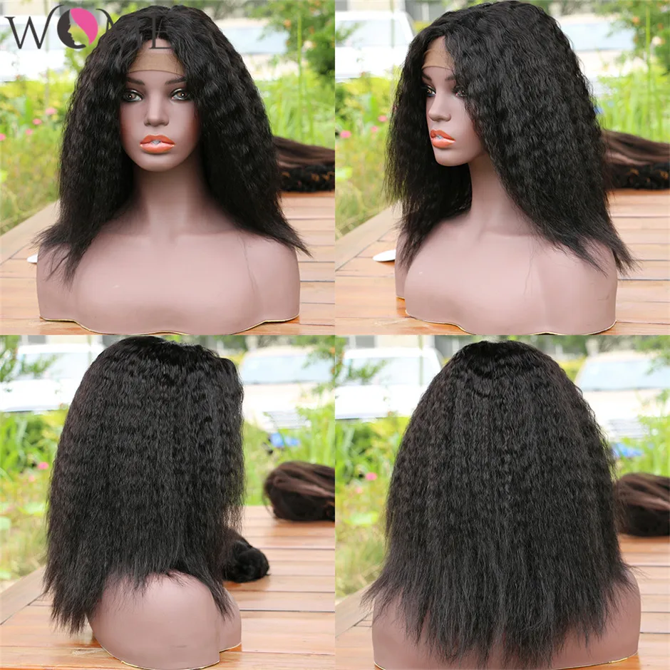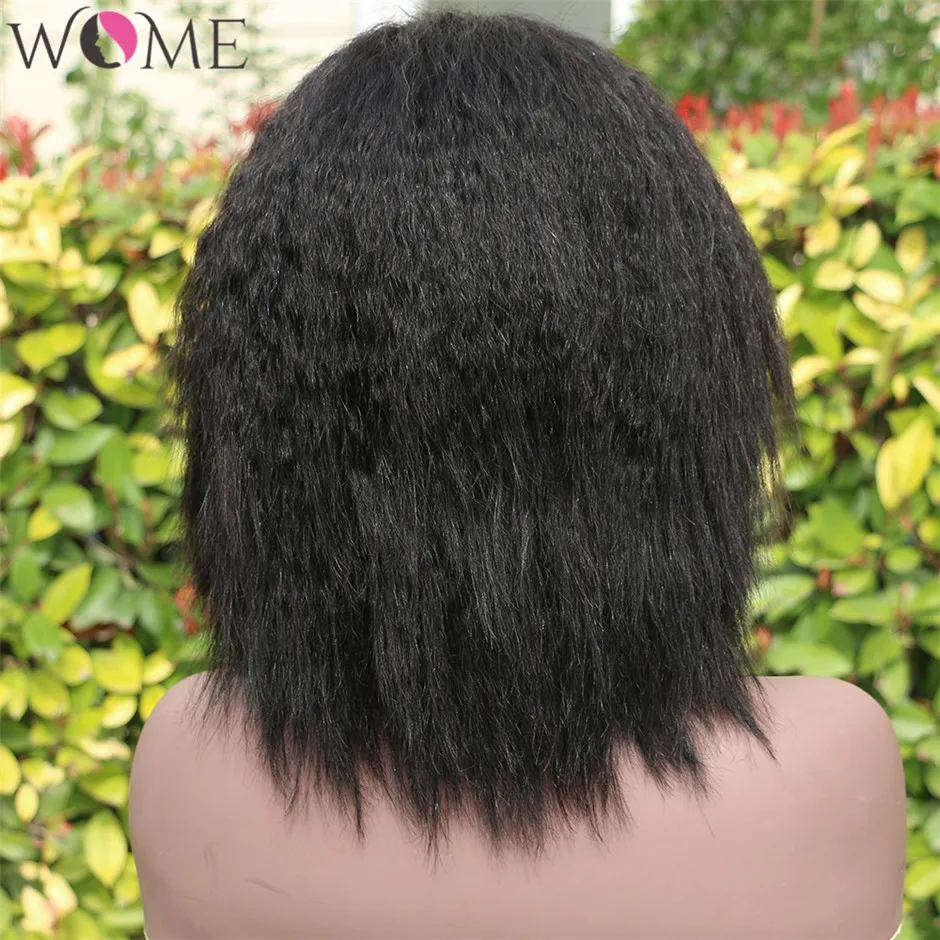 Бразильский прямой парик Yaki, парики из человеческих волос с прозрачной сеткой спереди, курчавые прямые парики из 150% T, предварительно выщипанные волосы без повреждений