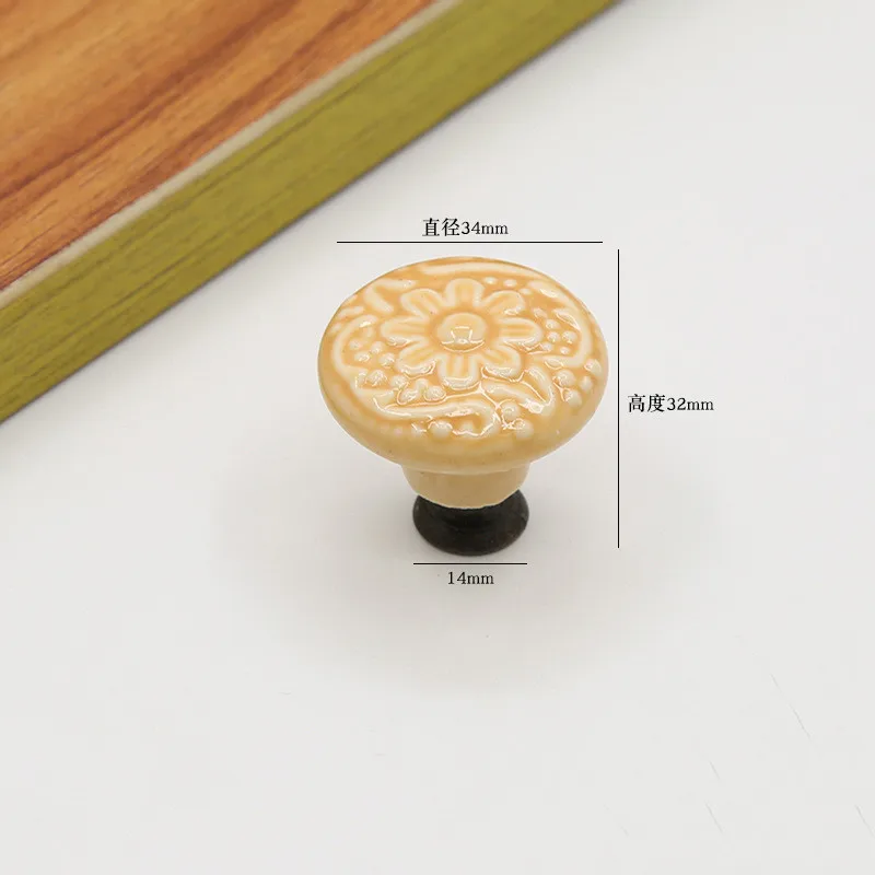 Круглая ручка с тиснением, 33 мм, керамический с одним отверстием дюйма, пасторальный ретро шкаф, ручки дверные для шкафа дюйма, мебельные ручки с одним отверстием сделай сам