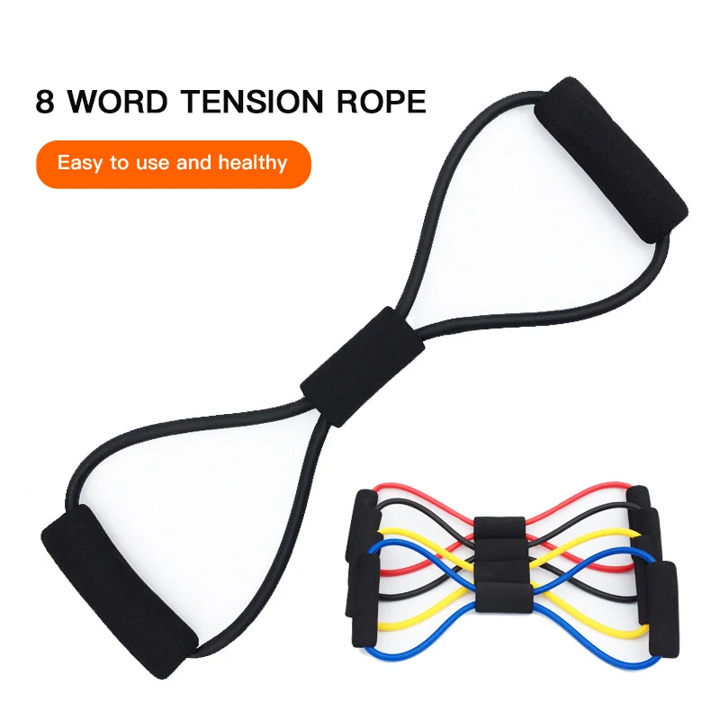 Йога Сопротивление упражнения полосы тренажерный зал оборудование для фитнеса Тяговая веревка 8 слов грудь расширитель эластичная мышечная тренировочная трубка Натяжная веревкаОписание: