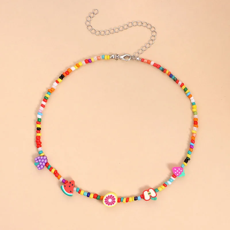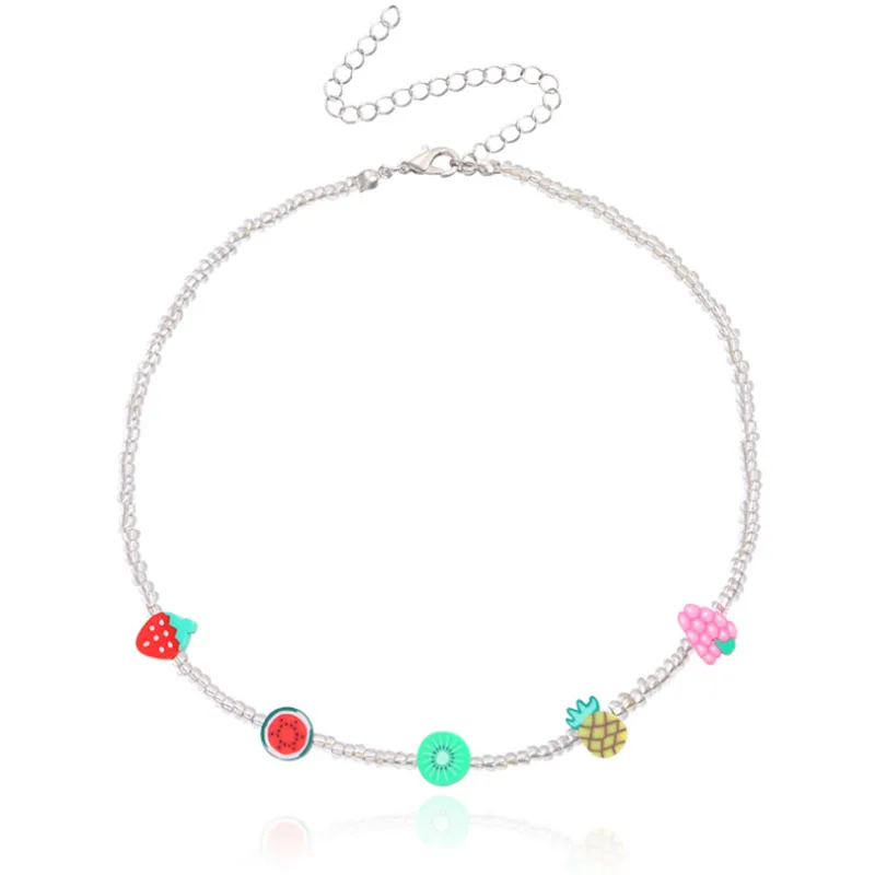 Модные красочные бусы, ожерелья с фруктами для женщин, бусы ручной работы в стиле бохо, милое ожерелье-чокер с лимоном и арбузом, подарочные украшения для девочек