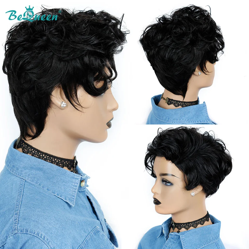 BeQueen, волнистые человеческие волосы с коротким вырезом, парик на...