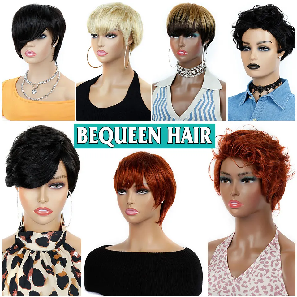 Bequeen Модели BeQueen бразильский стрижка Пикси парик человеческих...