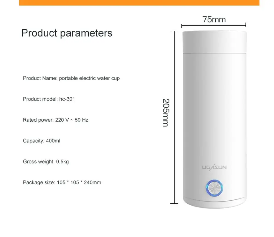 Переносной электрический чайник UGASUN, Термокружка, дорожный котел...