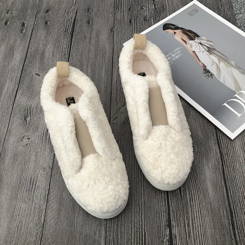 Кроссовки женские на платформе, повседневные Модные сникерсы на плоской подошве, кашемир ягненка, плюшевые меховые, Уличная обувь
