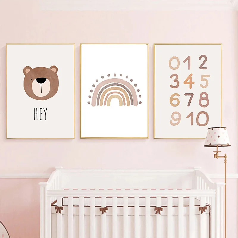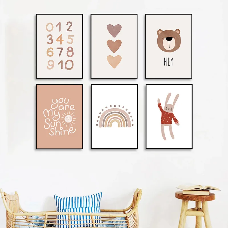 Постер с изображением радуги сердца, медведя, кролика, животных, цитаты, арабские цифры, Картина на холсте, абстрактный декор для детской комнаты