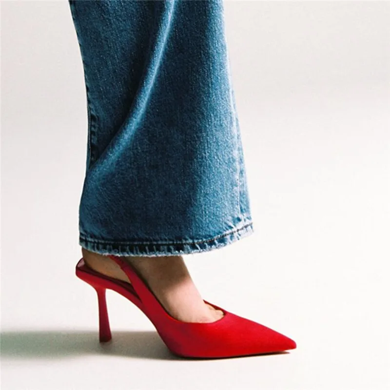 Блестящие женские туфли с ремешком на пятке ZA 2021, с острым носком, на тонком каблуке