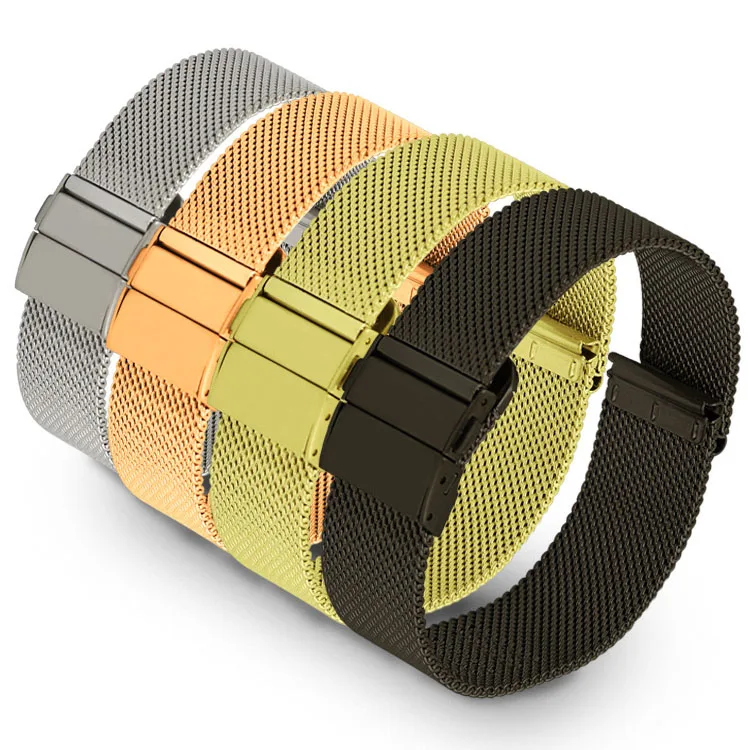 Ремешок для часов Миланская петля из нержавеющей стали, быстросъемный сетчатый Браслет с прямым концом для наручных часов, 16 мм 18 мм 20 мм 22 мм