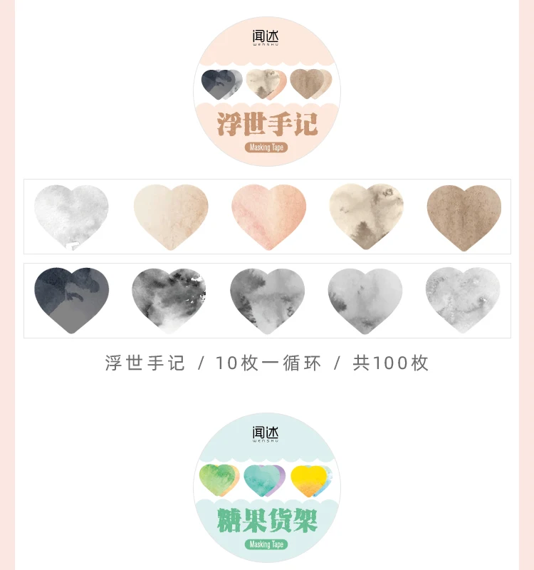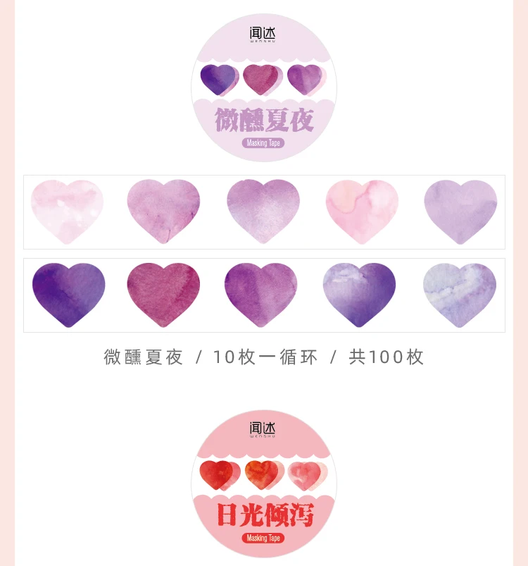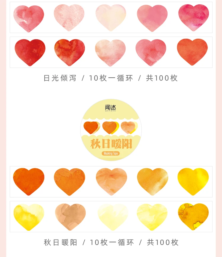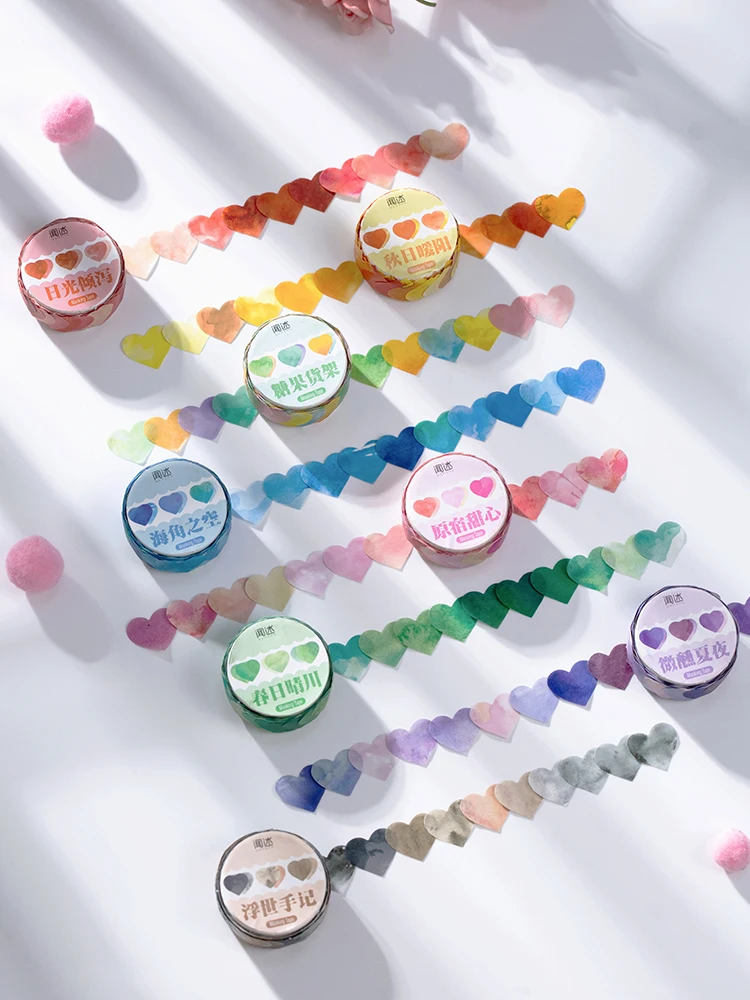 100 шт.рулон, декоративная клейкая лента в форме сердца