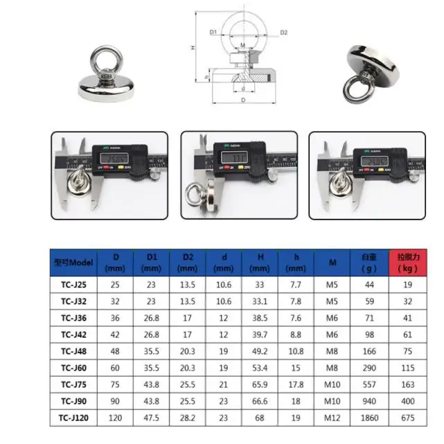 Супер мощное натяжениеЭтот рыболовный магнит является 36/42/48/60 мм в диаметре, принять мощный неодимовый магнит для своего основания. Он может предложить различные кг прочность при идеальных условиях, что делает вашу работу рыбалки проще.