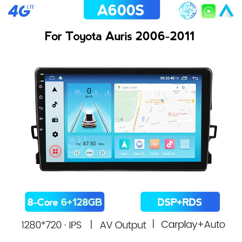 Автомобильный DVD-плеер RDS, 2 DIN, Android 10, 8 ядер, 6 ГБ + 128 Гб, для Toyota Auris 2006-2012, радио, видео, мультимедиа, навигация, GPS, Carplay
