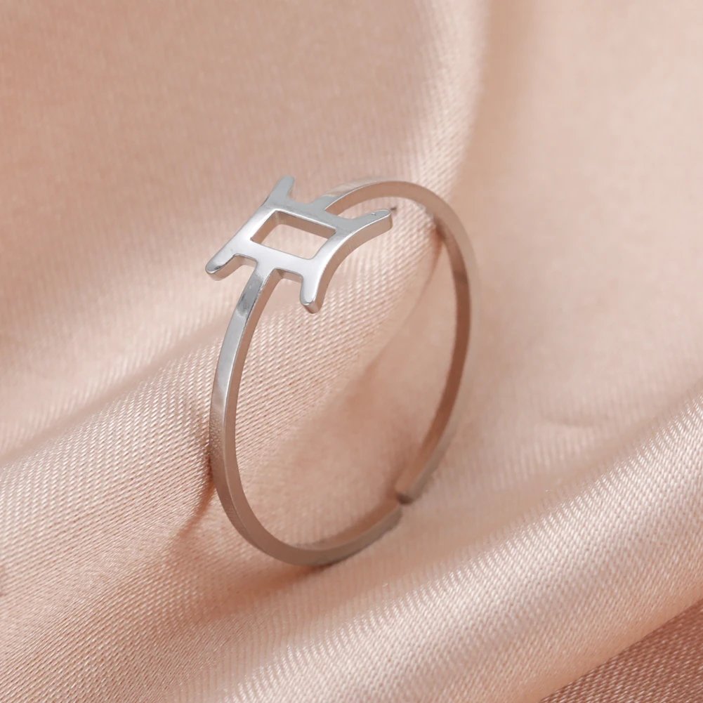 Кольцо Unift из нержавеющей стали с 12 созвездиями зодиака, Лев дева, регулируемое кольцо для женщин и мужчин, серебряный цвет, подарки на день рождения