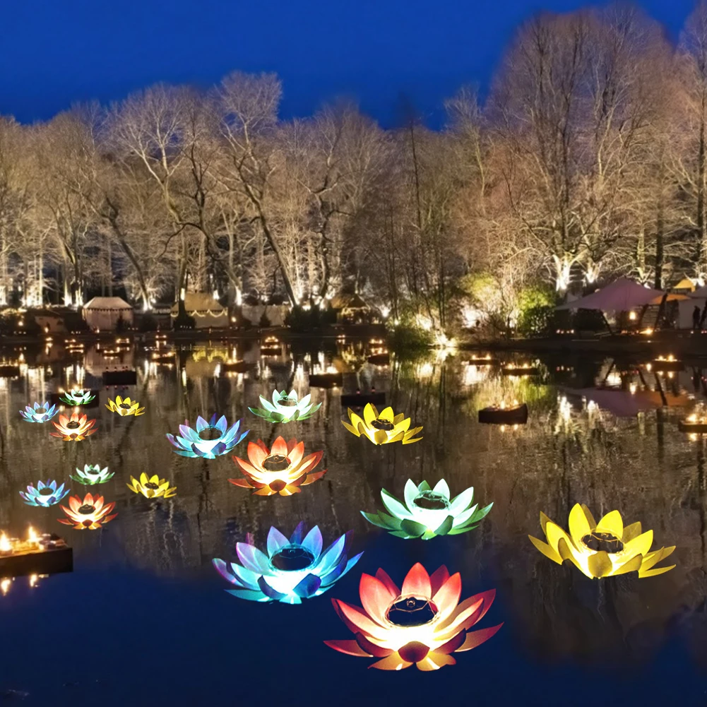 Светодиодная лампа в виде цветка лотоса на солнечных батареях, плав...