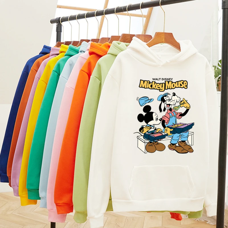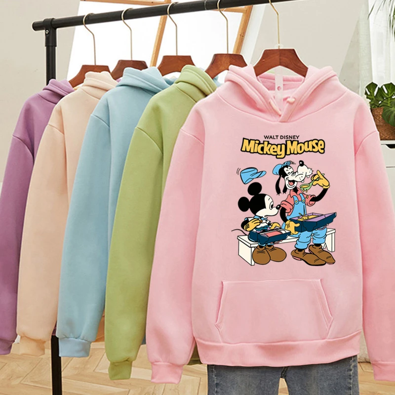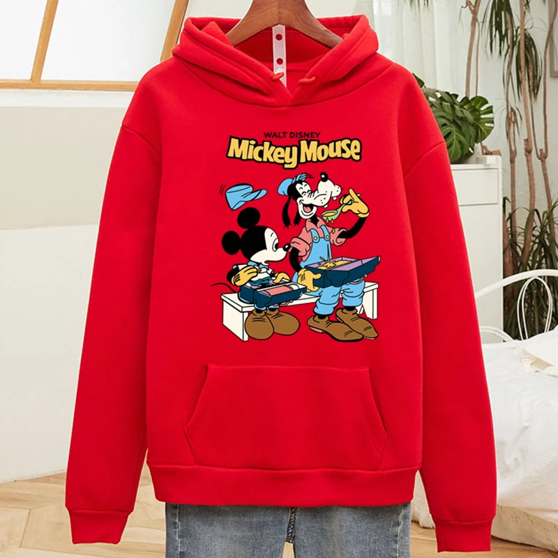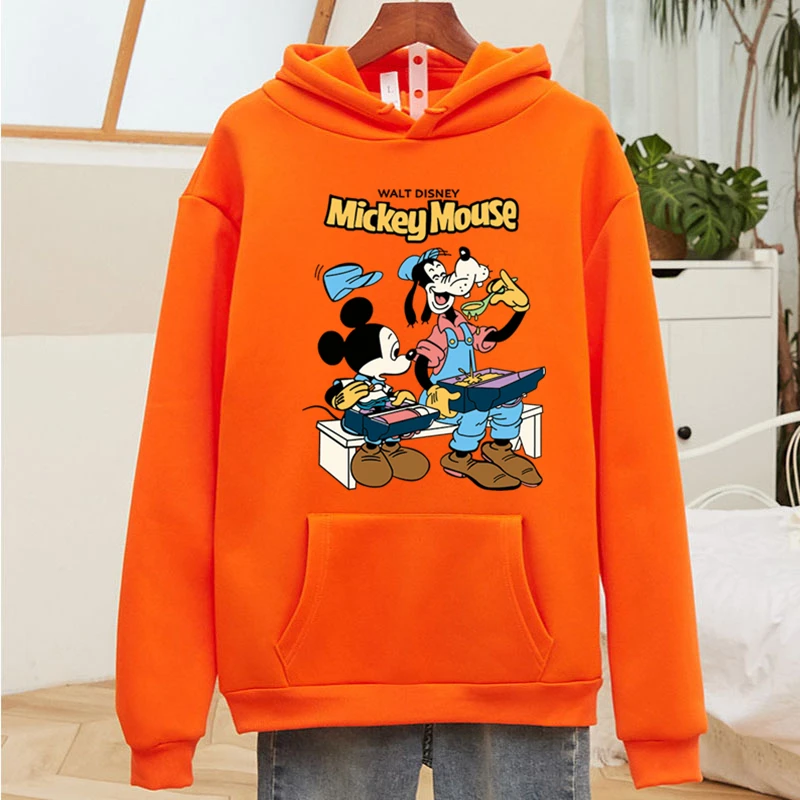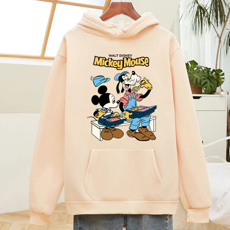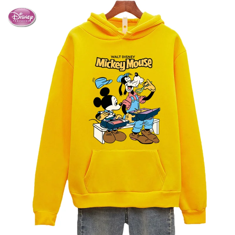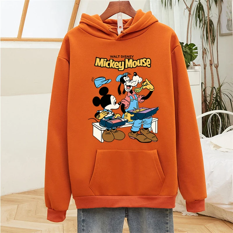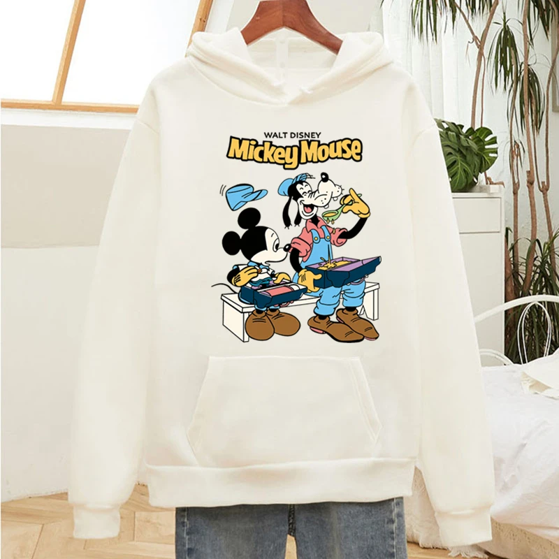 Осень-зима 2021 г., забавная Женская толстовка с капюшоном с изображением Микки Мауса и Гуфи-еды, винтажная Толстовка с длинным рукавом, осень Японская уличная одежда г., оверсайз