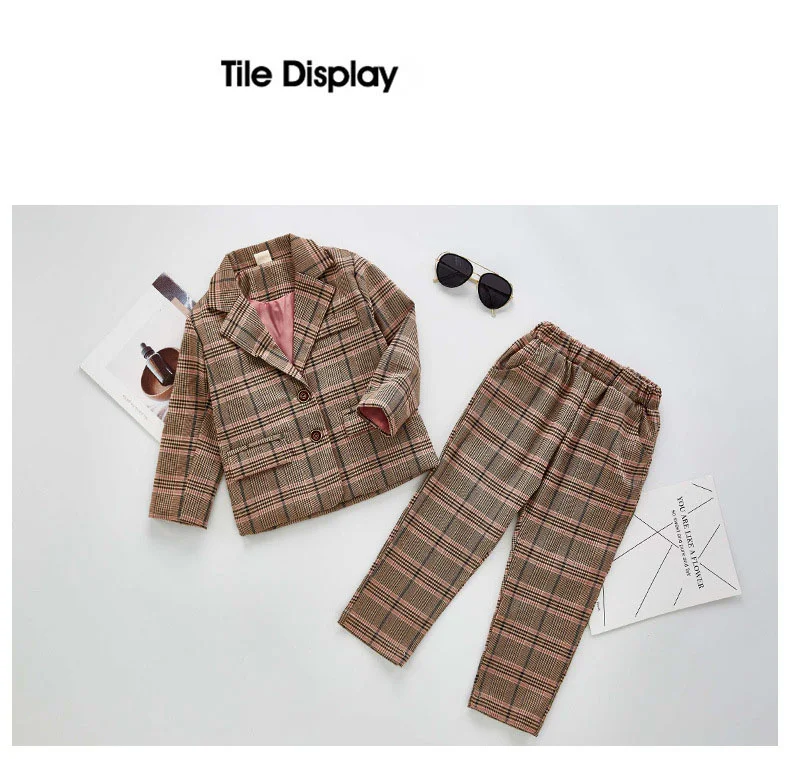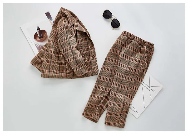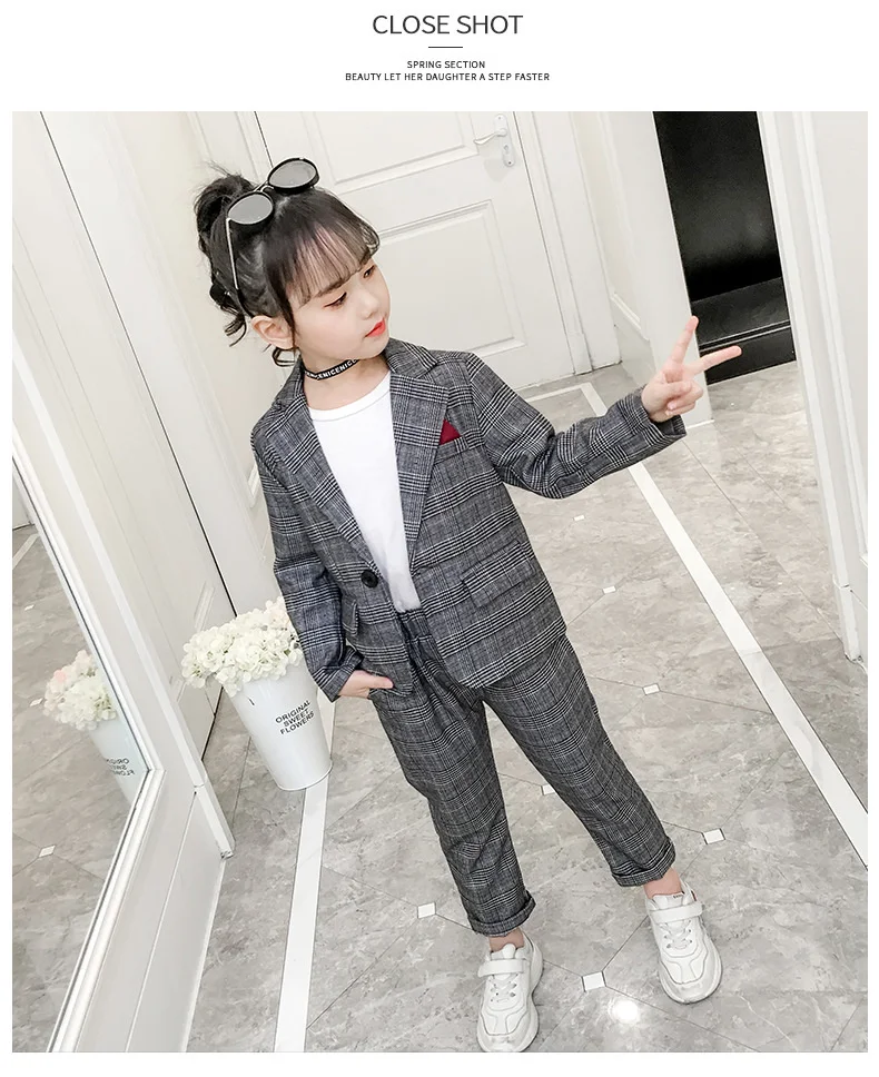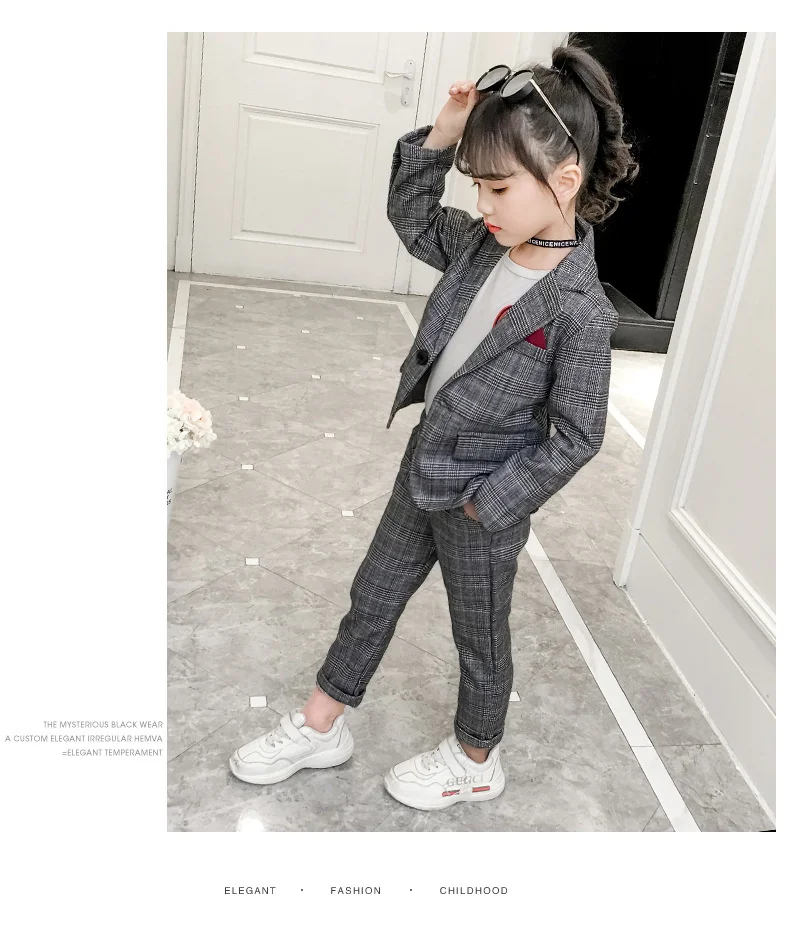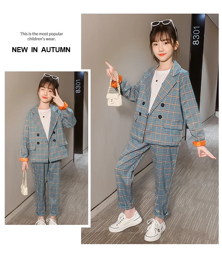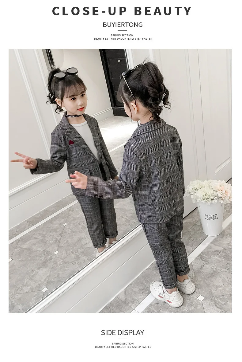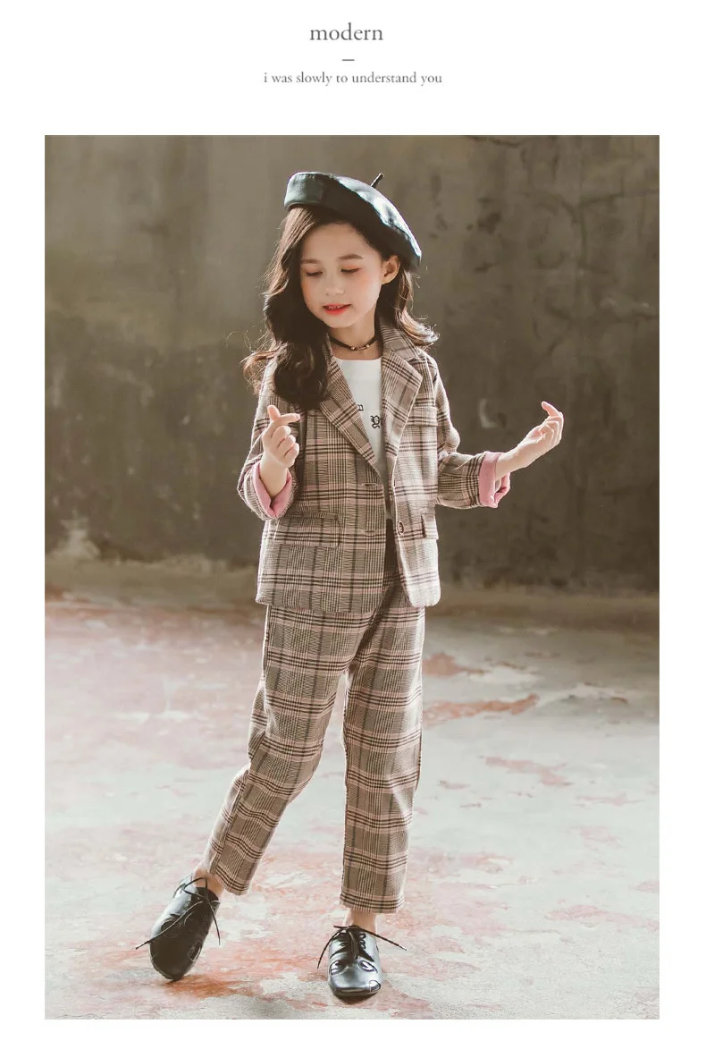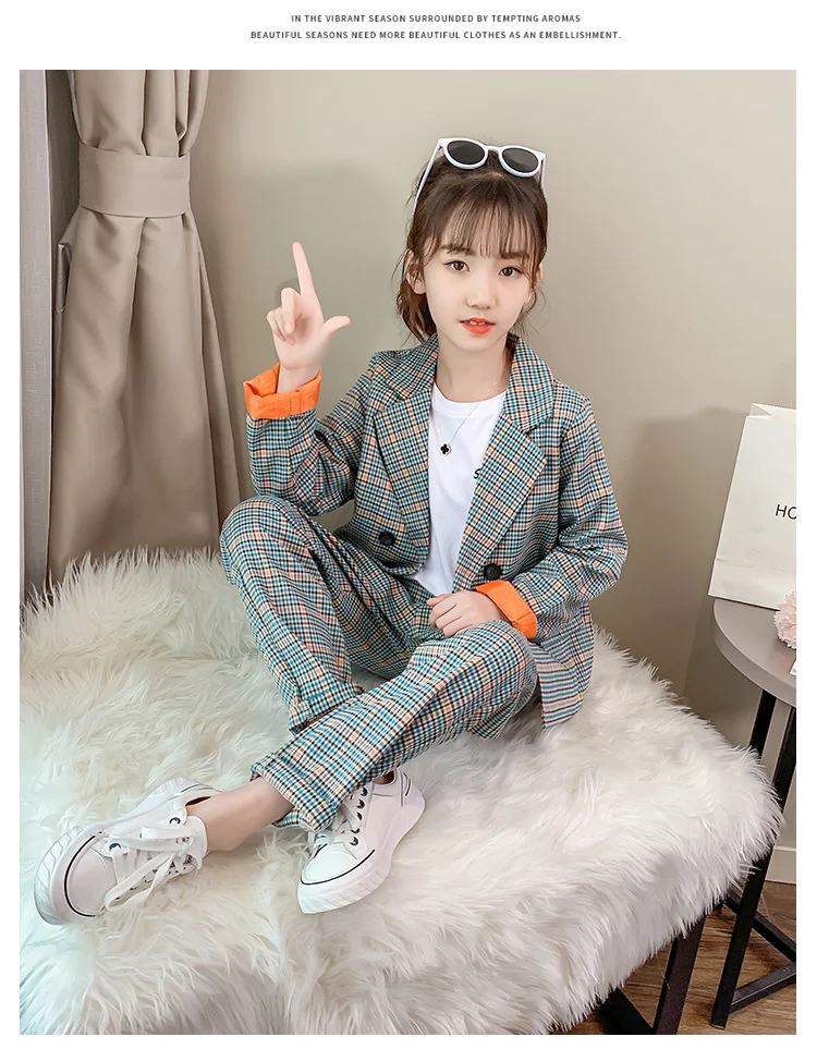 Комплект одежды для девочек-подростков, клетчатый осенний костюм для девочек, куртка и штаны, школьный спортивный костюм, одежда для детей 8, 10, 12, 13 лет