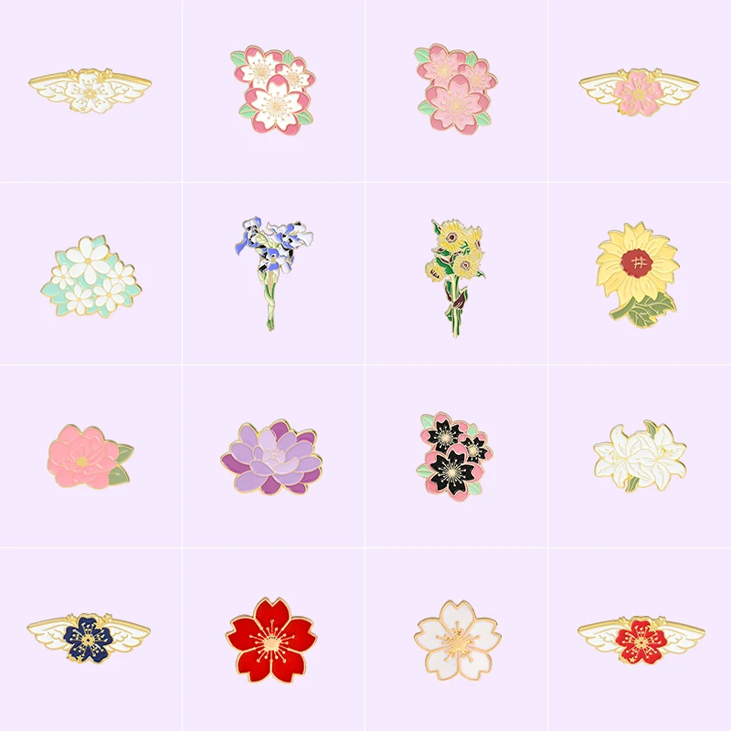 Эмалированные булавки в виде цветов, крыла сакуры, лилии, цветка по...