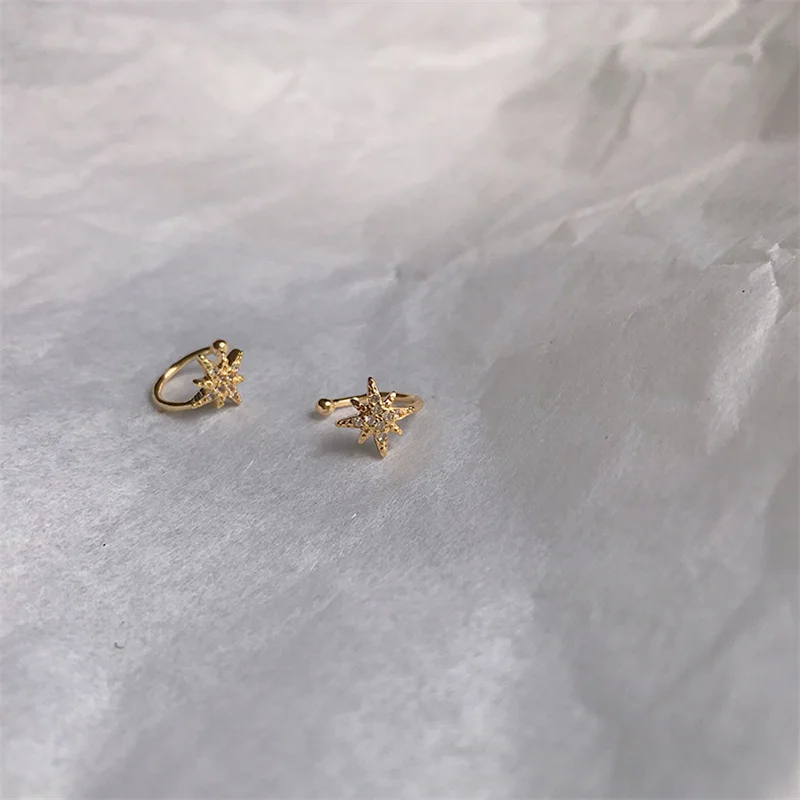 Новые модные золотые серьги-клипсы в форме звезды для женщин без пи...
