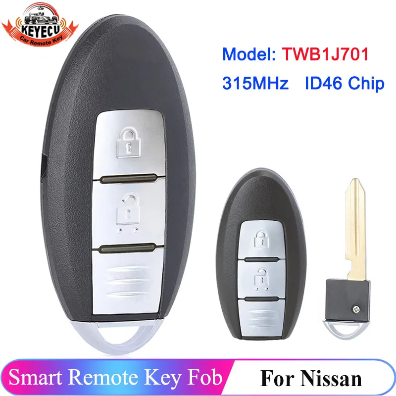 Пульт дистанционного управления KEYECU TWB1J701, 2 кнопки, 315 МГц, чип ID46 для Nissan Micra K13 March K13 Leaf 2012 2013 2014 2015 2016