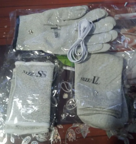 1 комплект Проводящие Серебряные волокна TENS / EMS электрод лечения перчатки + носки + наколенники + кабель для Меридиан Акупрессура устройства