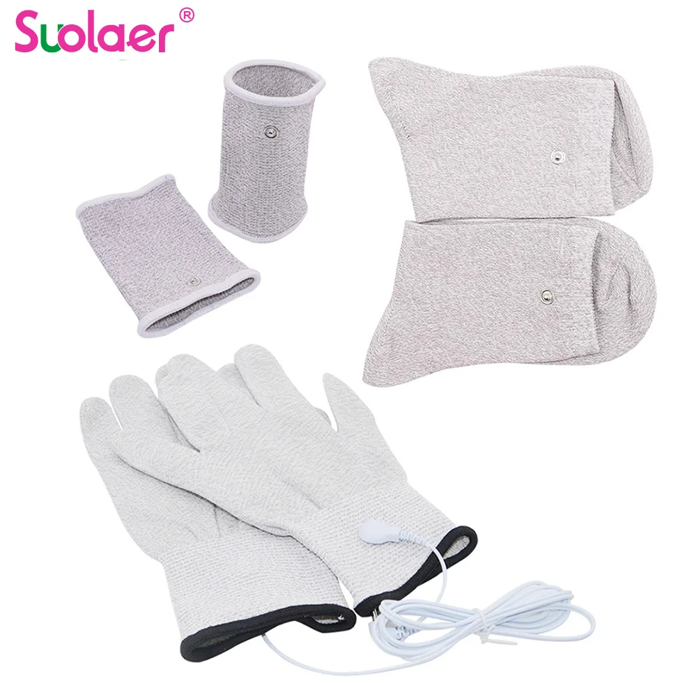 1 комплект, проводящие перчатки для лечения электродов из серебраEMS + носки + наколенники + кабель для устройства акупрессуры меридиана