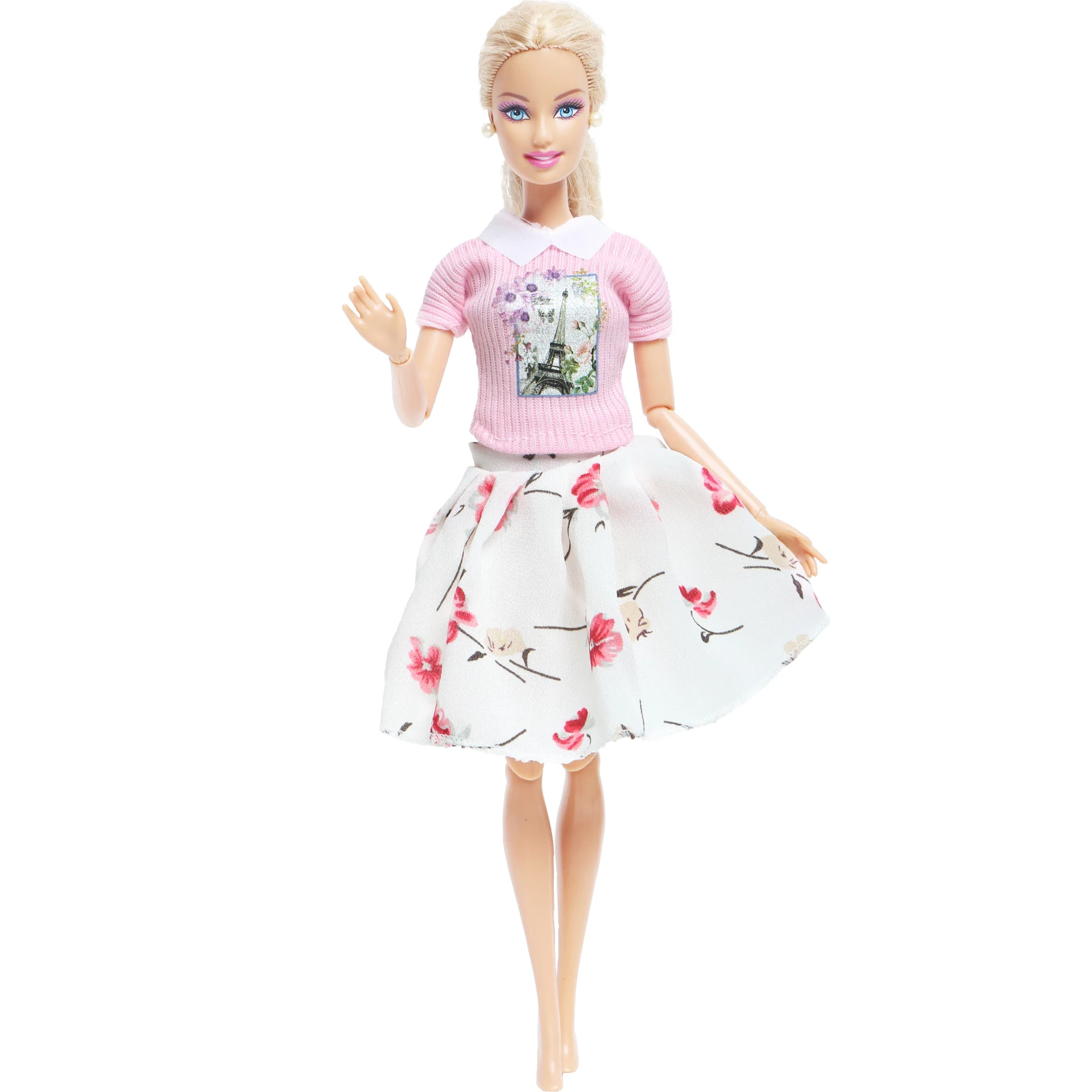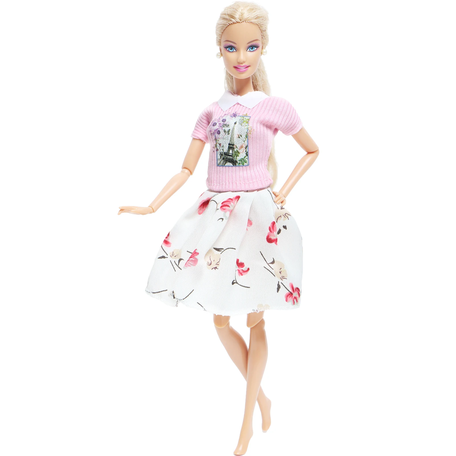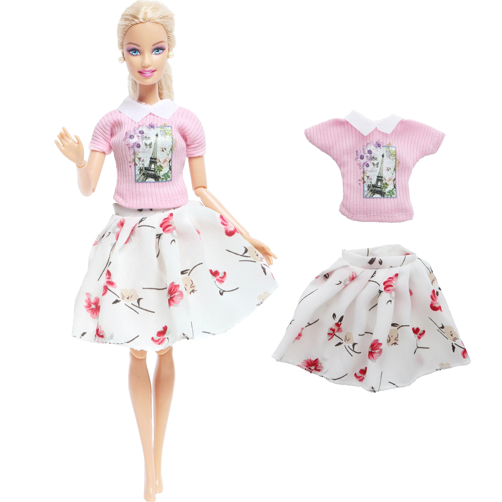 Платье для куклы, 1 шт., модная рубашка с рисунком розовой Эйфелевой башни, Цветочная белая юбка, Одежда для кукол Барби, аксессуары для детей, игрушки для рукоделия