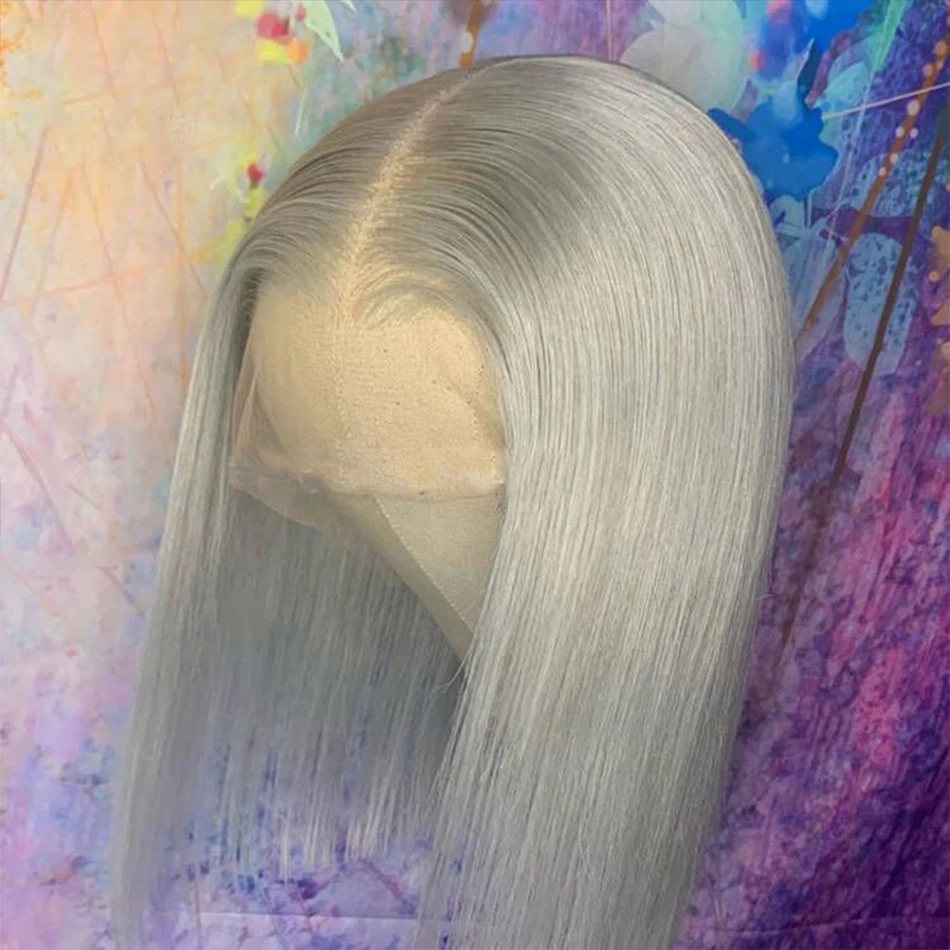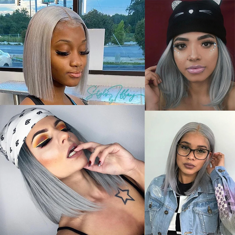 13х1т часть кружева фронта боб парики бразильские прямые серые кружева фронта боб парик предварительно сорванные серебро серый Remy прозрачные кружевные парики