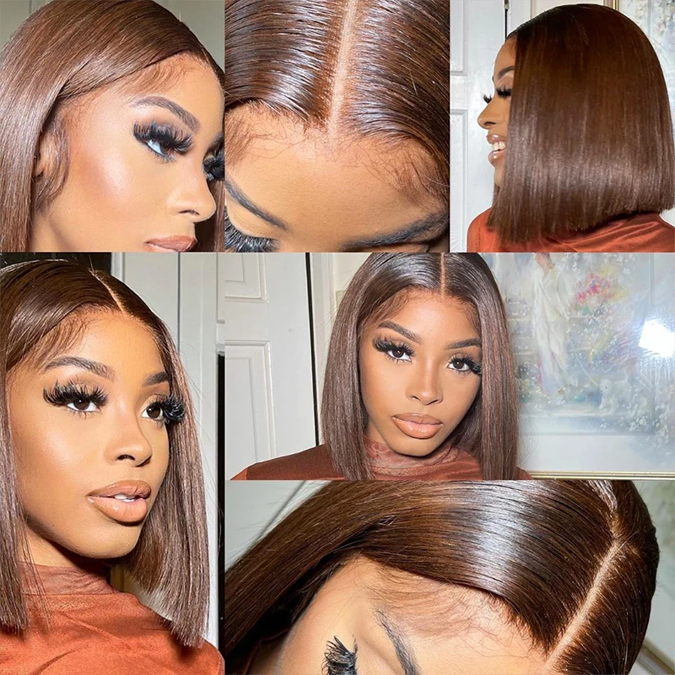 Короткий парик Боб, парик из человеческих волос HD на сетке спереди...