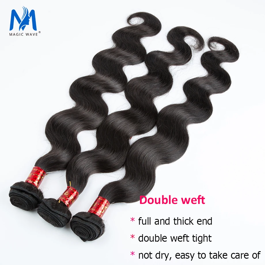 Волшебная волна 10 А перуанские волнистые пучки волос с кружевной застежкой 3 4 толстых пучка с 13x4 фронтальными натуральными волосами для наращивания