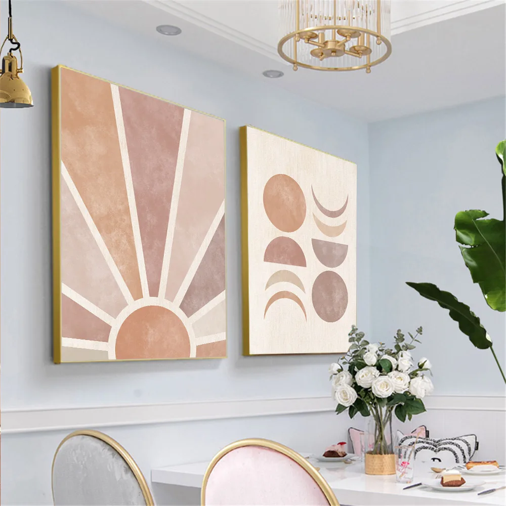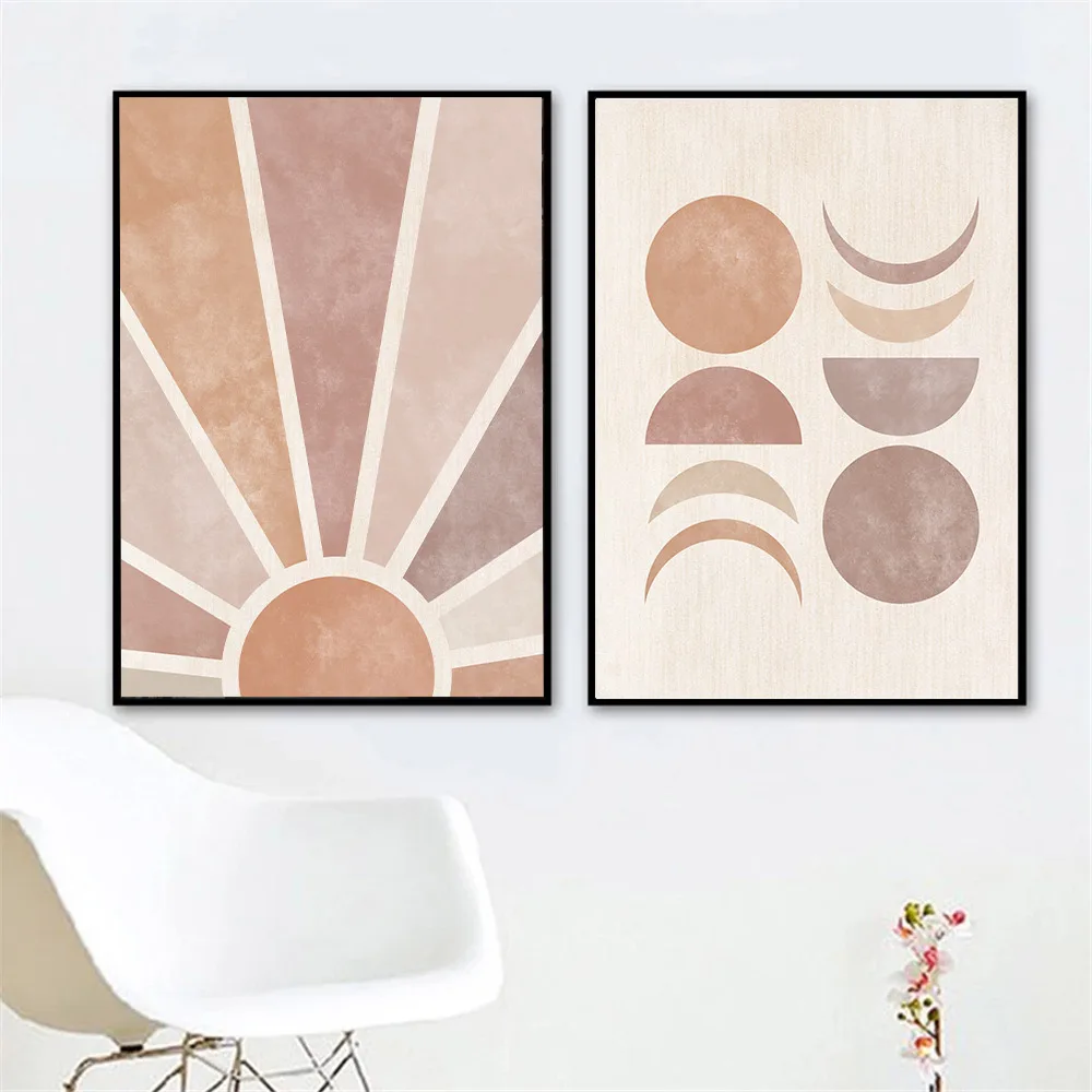 Настенный плакат в стиле бохо с изображением Солнца и Луны, абстрактная живопись на холсте, арка, геометрические художественные принты, Минималистичная картина, декор для гостиной