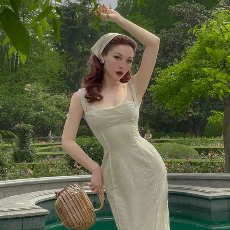 Женское винтажное платье Le Palace, оригинальное платье во французском стиле с открытыми плечами, приталенное пикантное платье на бретелях-спагетти, лето 2021