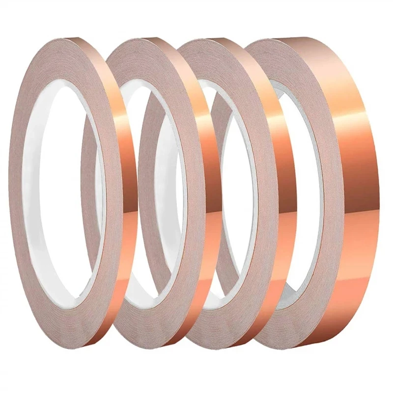 Спецификация: 1. Название продукта: двойная проводящая медная фольга 2. Материал: медная фольга 3. Толщина: около 0,5 мм 4. Сила клея: 1,2-1,4 кг/25 мм 5. Температурный погрешность: -10 - 140 градусов 6. Динамика: 4,5-4,8 кг/мм 7. Удлинение: 7%-10% 8. Длина: прибл. 20 м Особенности: 1. Защита от электромагнитных помех, удерживает электромагнитную волну. 2. Защита задней части накладок и полостей гитары. 3. Ремонт медных следов на печатных платах. 4. Используется для электрогитары, трансформатора, смартфона, ПК, КПК, PDP и LCD, копира и т. д.