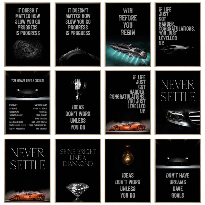 Черно-белые успехи мотивирующая Цитата картины на искусстве вдохновляющая Настенная картина офисное украшение для дома