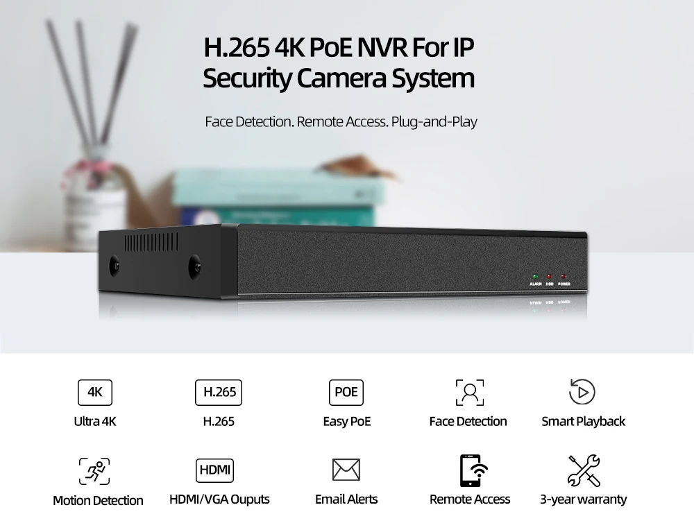 POE NVR More FeaturesFace Record,Face Detection,Face Playback