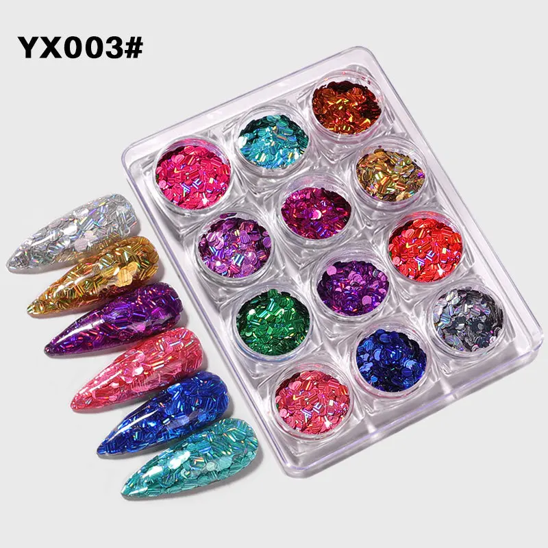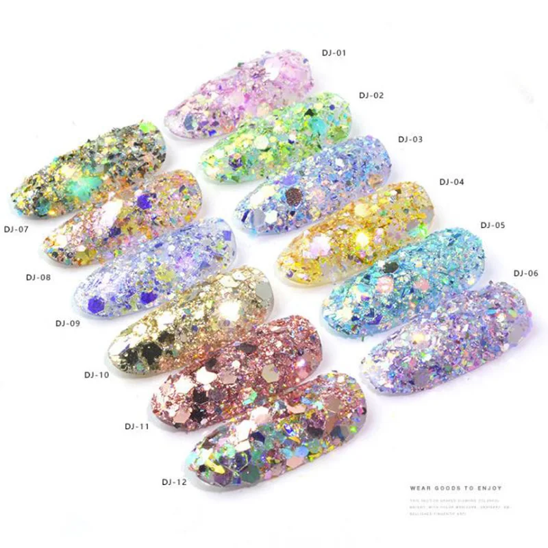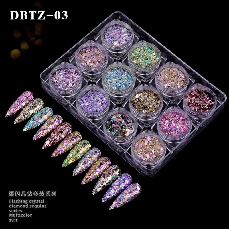 12 коробок, радужные блестящие Блестящие Блестки для ногтей, украше...
