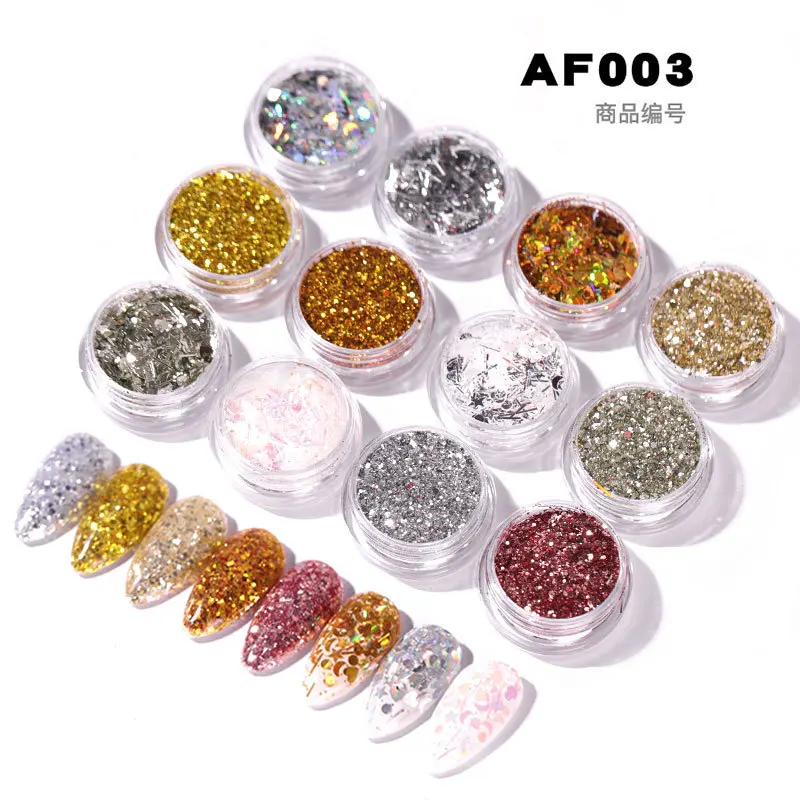 12 шт.компл. блестящая пудра для ногтей, блестки, золото, серебро, ...
