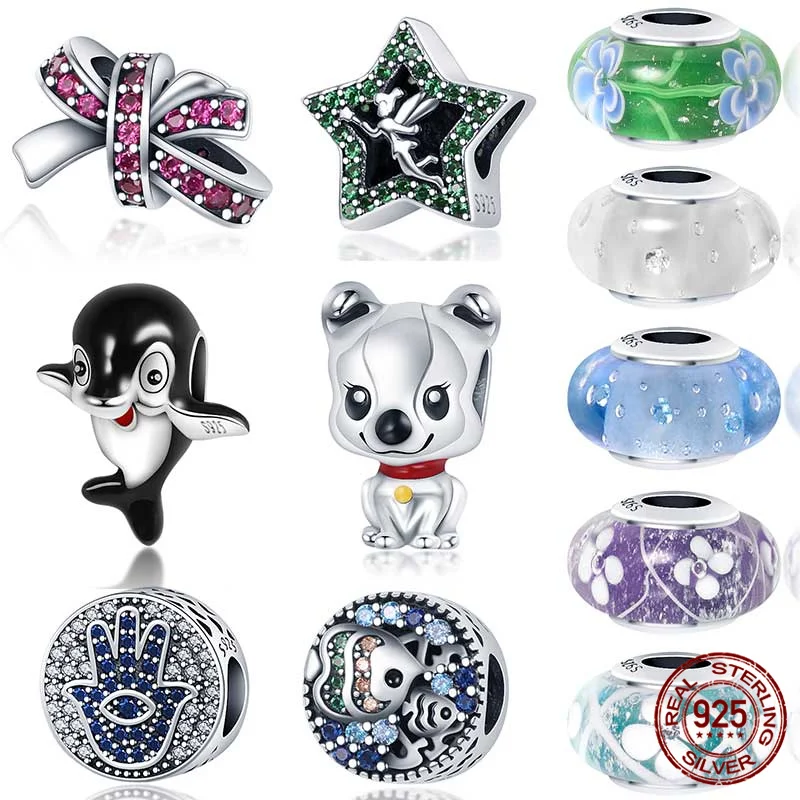Бусины-шармы из серебра 925 пробы для браслета Пандоры, 2021