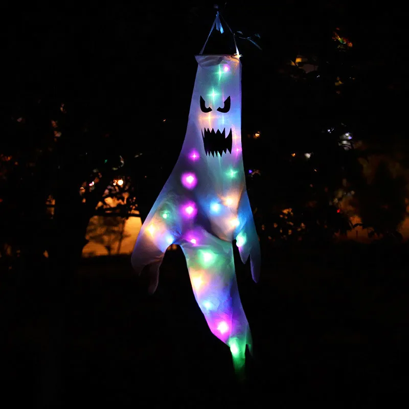 Украшения на Хэллоуин, привидение, ветрозащитный светодиодный светильник, подвесной спутанный призрак, флаг, ветровка для помещений, улицы, двора, реквизит для вечеринки