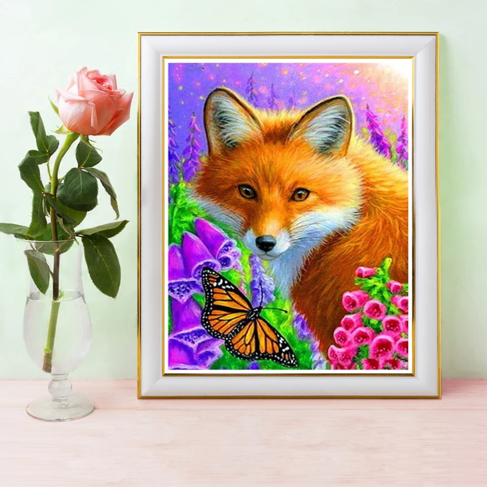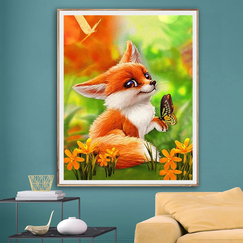 5D алмазная живопись сделай сам, квадратная лиса, Набор для вышивки крестиком, Алмазная мозаика, искусство, картина, подвесная живопись, украшение для дома
