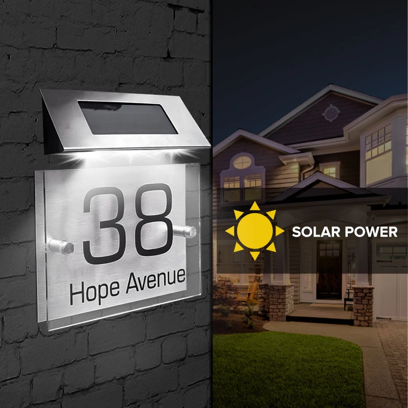 Светодиодный светильник с номером дома на солнечной батарее, адресная лампа сделай сам для дверного номера, уличное освещение с солнечной перезаряжаемой батареей