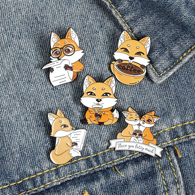 Значок на лацкан, брошь в виде мультяшного животного, лиса, соцветы, кофейная книжка, эмалированные булавки, броши, женские Значки для одежды, ювелирные изделия, новогодние подарки