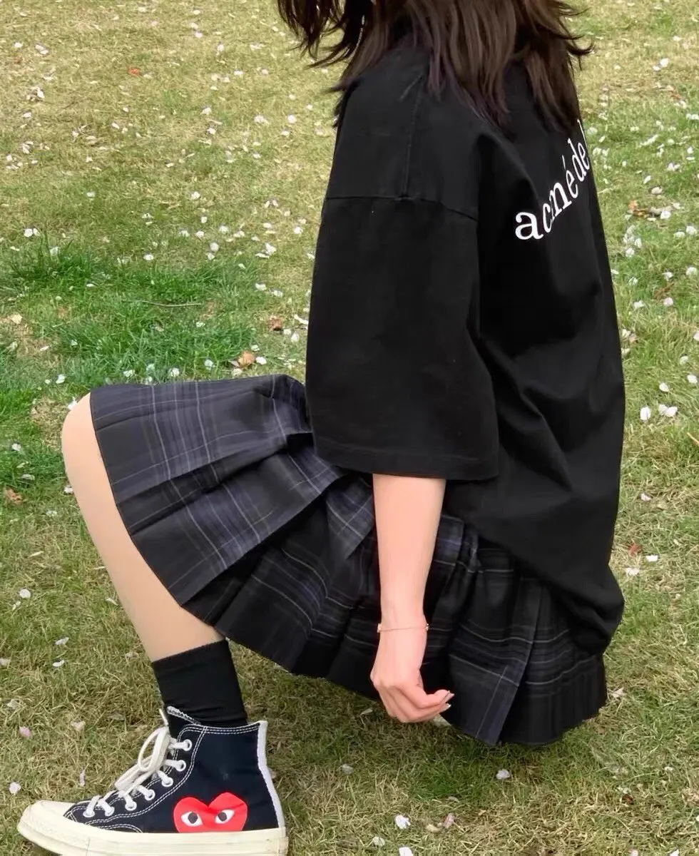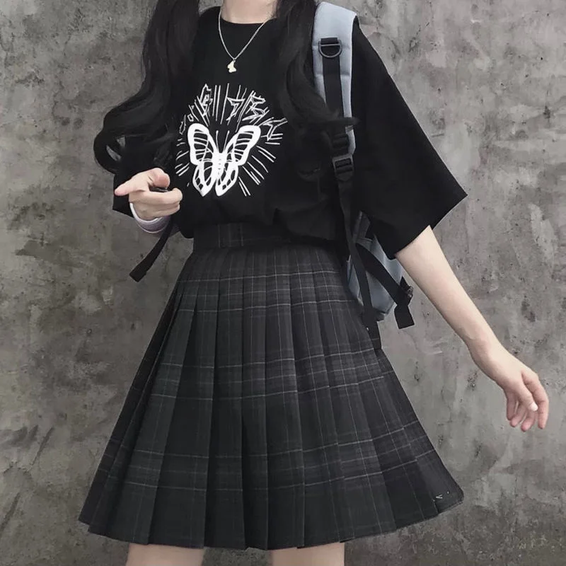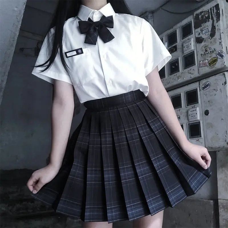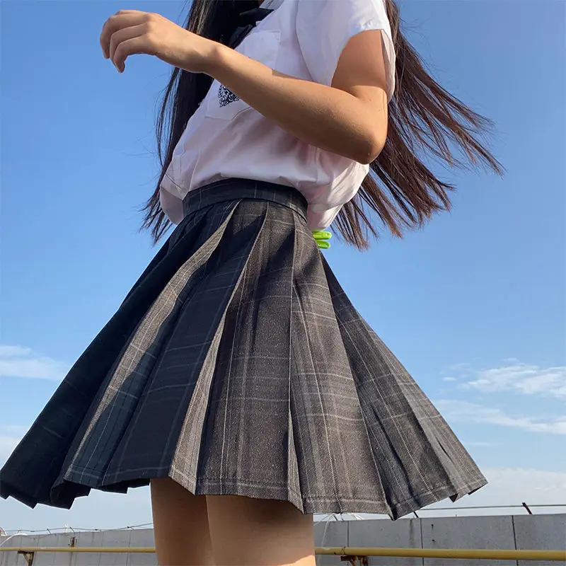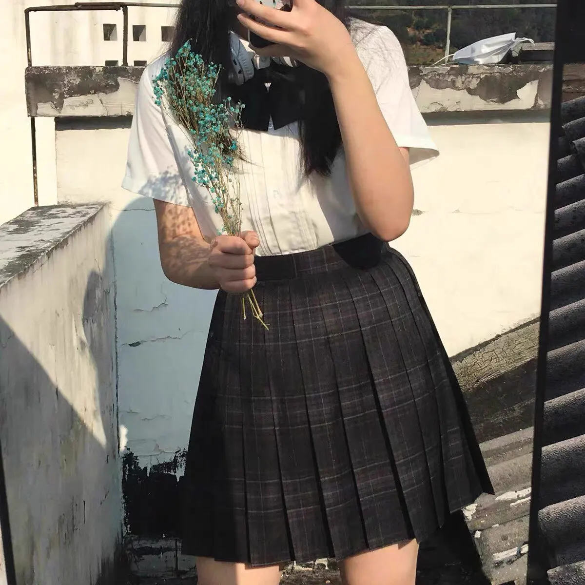 Клетчатая юбка HOUZHOU, Черная Женская юбка с завышенной талией, плиссированная мини-юбка, кавайная японская школьная форма в стиле преппи для девочек