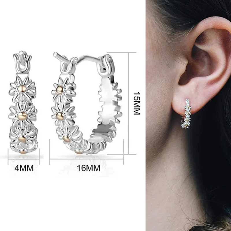 Новый 925 серебро ромашка серьги-кольца для женщин; Простые Стильны...